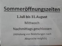 Ab 1.Juli bis 31.August 2019 haben wir Mittwoch Nachmittags geschlossen.