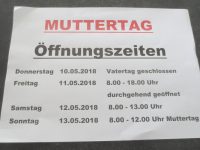 Donnerstag 10.05.2018 Vatertag geschlossen