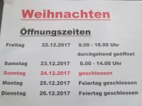 23.12.2017 Samstag von 8.00-14.00 Uhr geöffnet