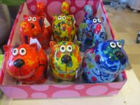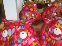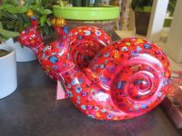 Die Schnecken haben diesmal neue Freunde mitgebracht; kleine Spardosen als Katze, Frosch usw und für Duftöl Frösche.
