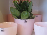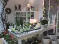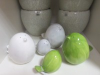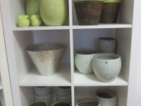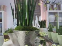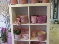 Keramikübertöpfe und Glasgefäße in zarten Frühlingsfarben und silberne Schalen sind frisch von der Messe eingetroffen