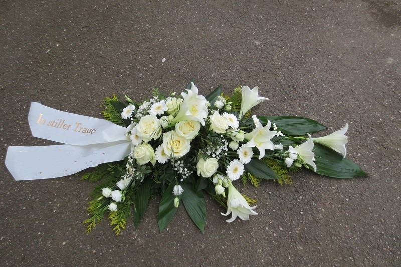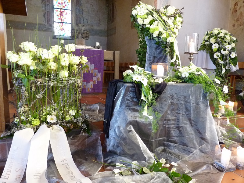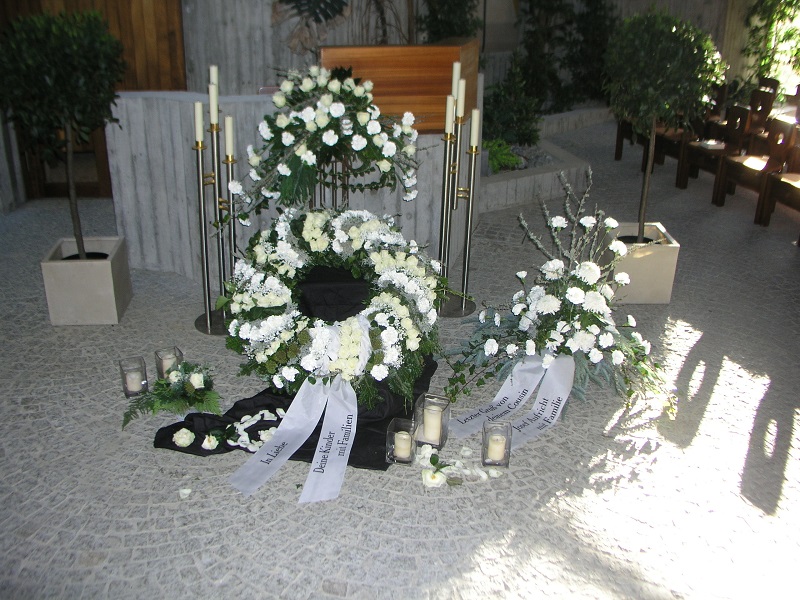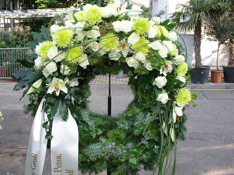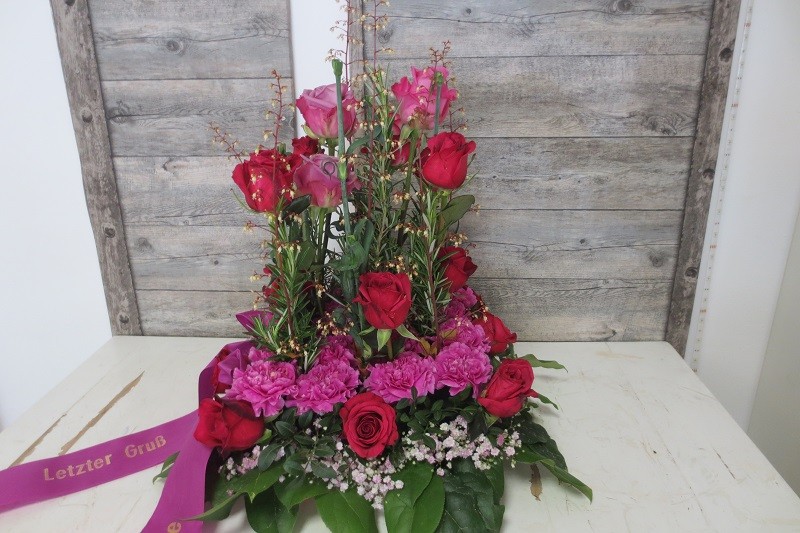 Sie erhalten bei uns Trauergestecke in verschiedenen Formen und Farben, um sich individuell beim Verstorbenen verabschieden zu können.