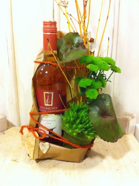 Sie möchten einen Wein, Sekt oder ein anderes Getränke verschenken! Doch nur die Flasche ist Ihnen zu wenig! Kommen Sie vorbei, wir dekorieren Ihnen die Flasche mit Blumen oder in einen Korb.