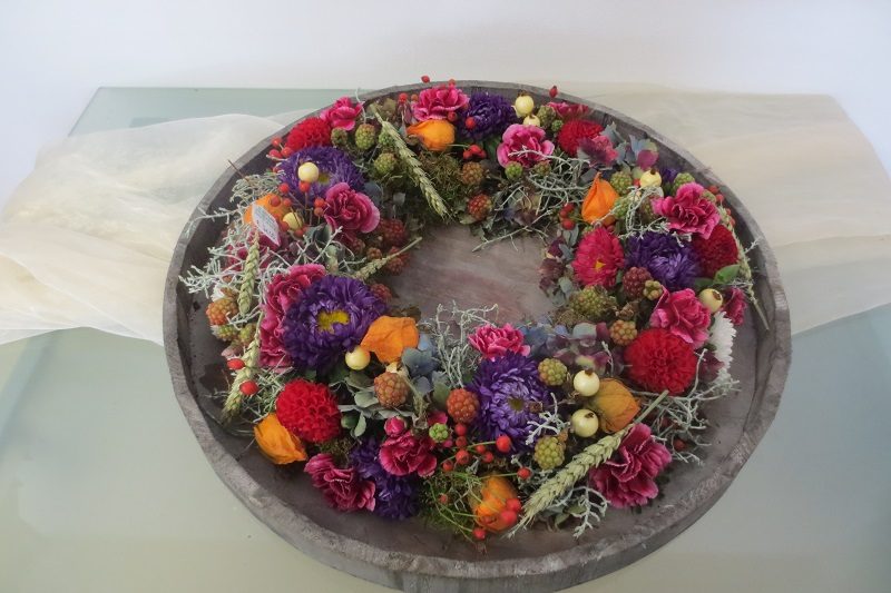 Herbstkränze als Türkranz oder Tischschmuck in verschiedenen Ausführungen jetzt erhältlich.