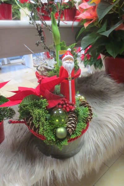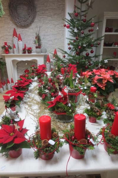 Weihnachtssterne, Servietten, Amaryllis, Nikolausfiguren, Adventliche Gestecke und vieles mehr.