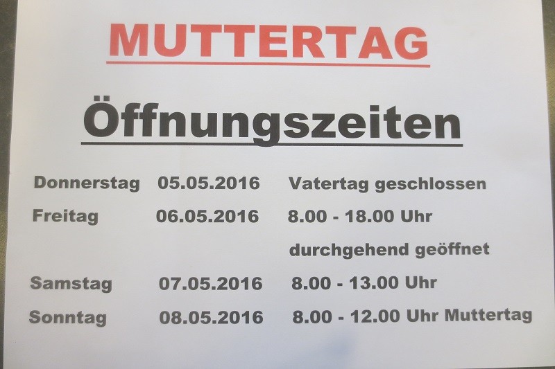 Freitag 06.05.2016 8.00-18.00 Uhr durchgehend geöffnet