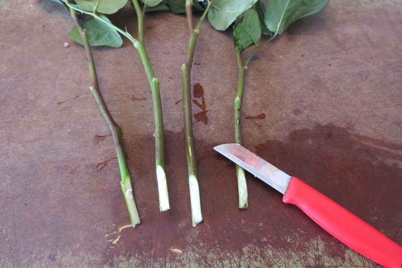 Die Schnittblumenstiele schneiden Sie mit einem scharfen Messer schräg und nicht zu kurz von oben nach unten an. Achten Sie darauf, dass keine Blätter an den sich im Wasserbefindlichen Stielenden sind.